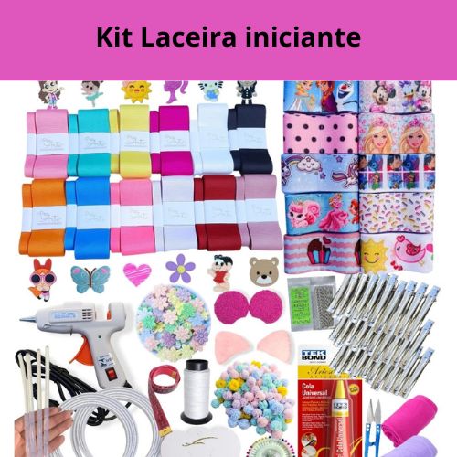 Kit de Laceira iniciante:Assim como Este kit é indicado para as iniciantes nele contém os materias para laços e tiaras tudo oque você irá precisar ao começar a fazer laços e tiaras.